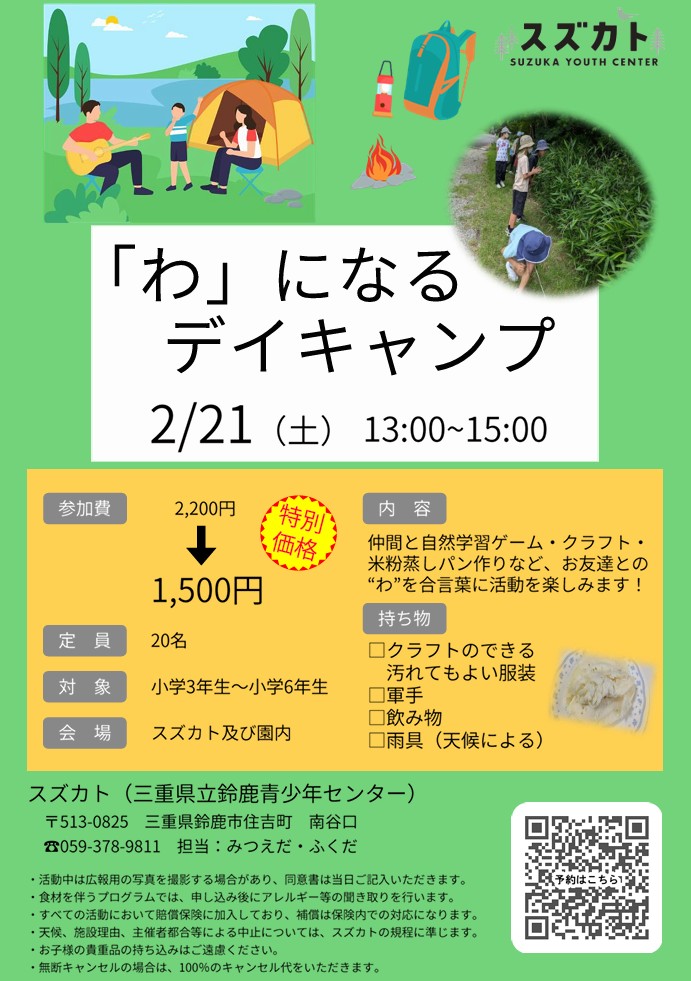 2/21 (土)”「わ」になるデイキャンプ ” スズカト主催事業 蒸しパン作りやクラフトを楽しもう!