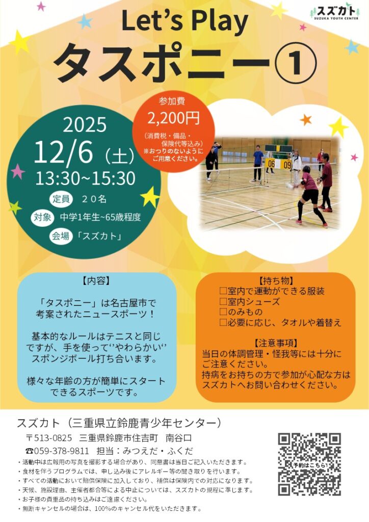 募集終了!12/6(土)「Let’sPlay タスポニー①」スズカト主催 ニュースポーツ開催♫