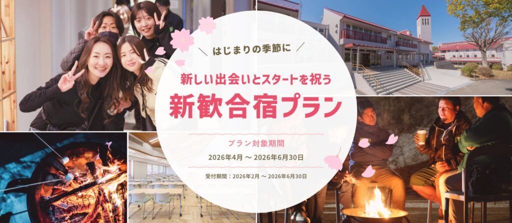 はじまりの季節にふさわしい、「新しい出会いとスタートを祝う、新歓合宿プラン」を期間限定でご用意しました。“仲間と自然の中で過ごす新歓合宿”という記憶に残る体験をつくりませんか?