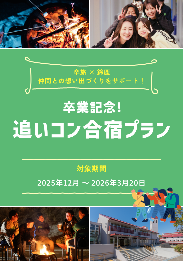 本プランでは、卒業前の仲間との時間をしっかり楽しめるよう、スズカトならではの3つの特典をご用意しました。学年の締めくくりとなる大切な合宿を、より思い出深い時間にしていただけます。